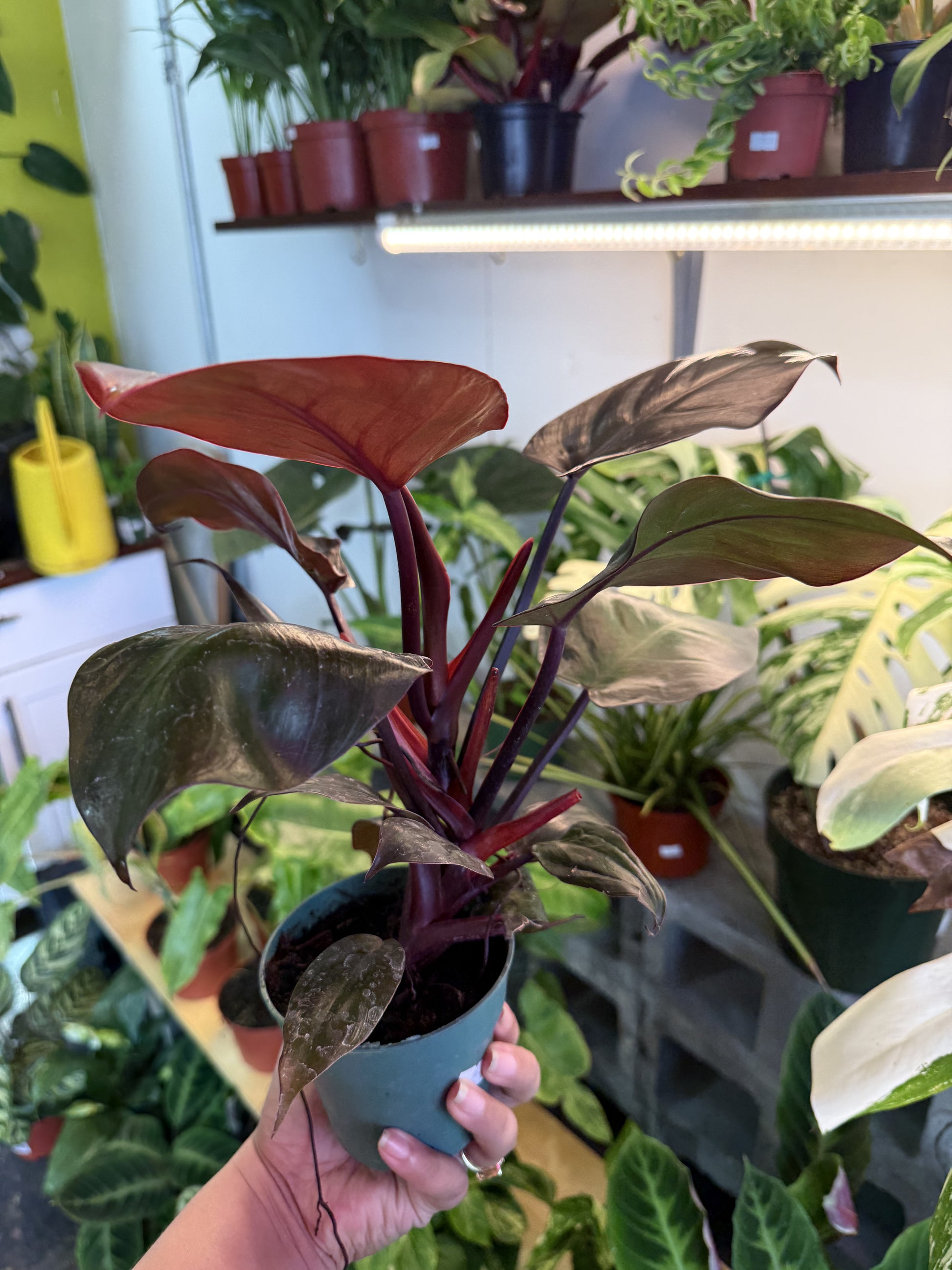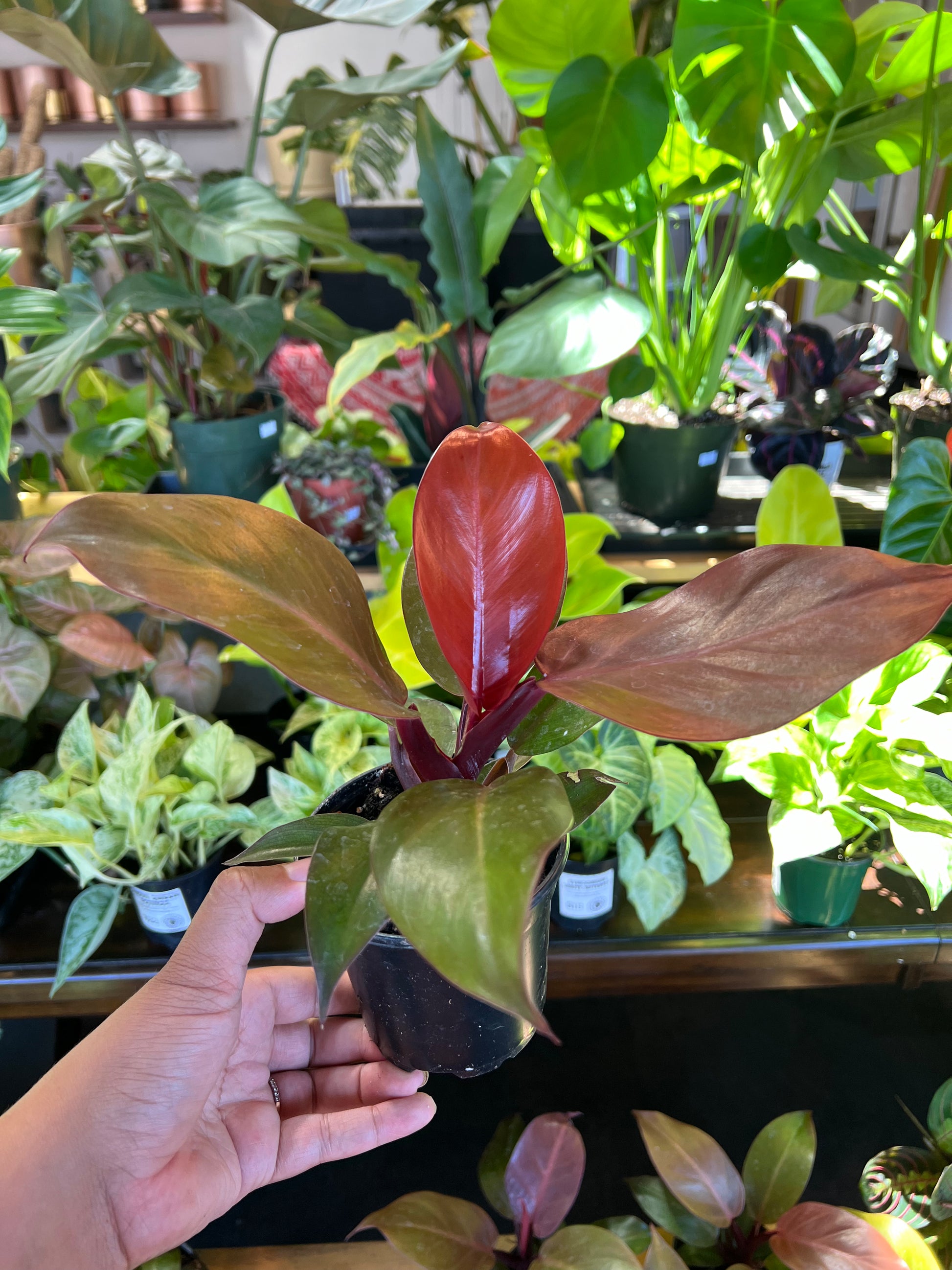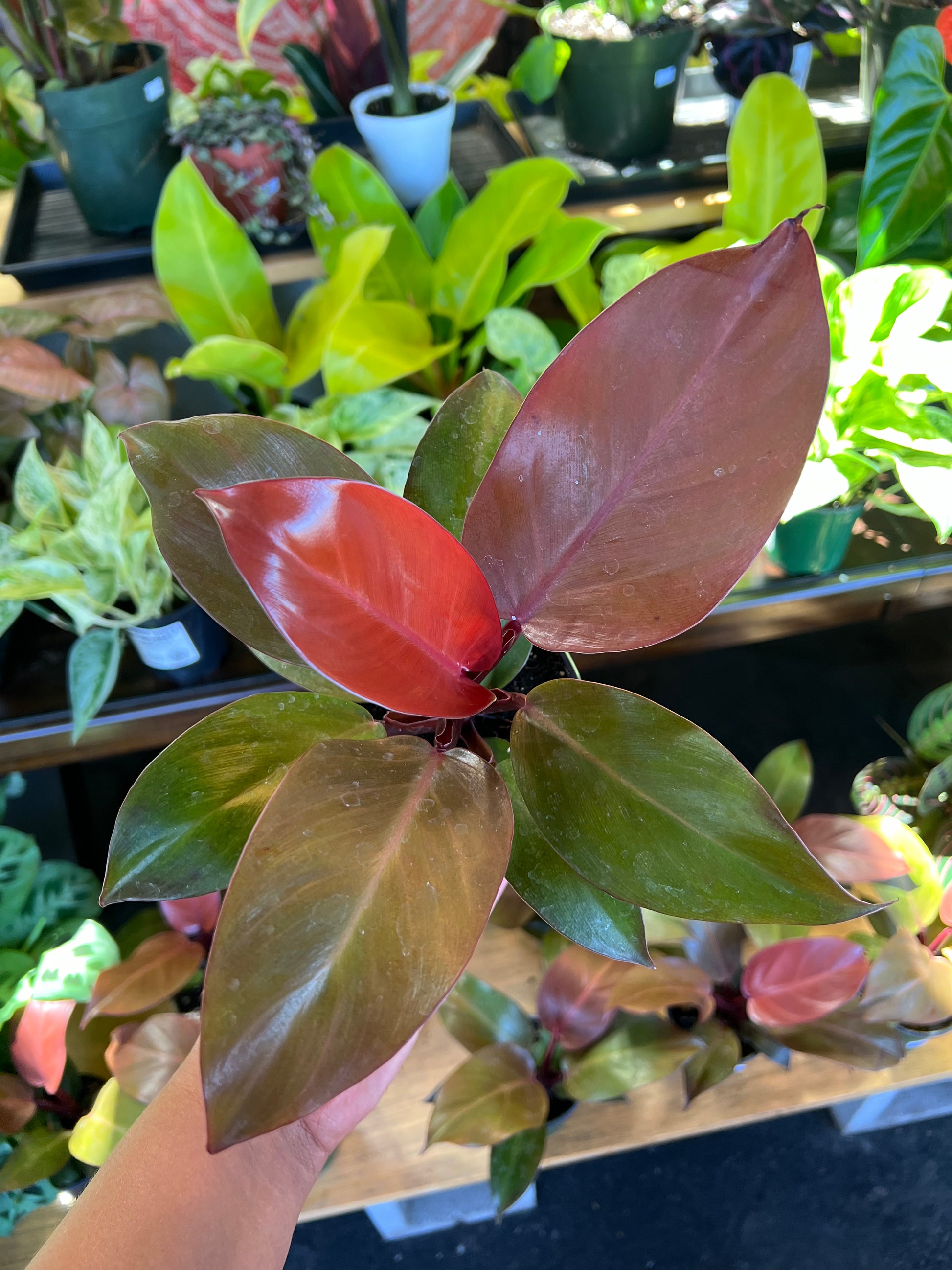 Add a burst of color to your indoor jungle with the Philodendron ‘McColley’s Finale’! This stunning hybrid is admired for its vibrant foliage that transitions from bright orange-red to deep burgundy and finally to a glossy dark green as the leaves mature. The bold mix of warm tones creates a tropical and dramatic effect, making it a standout choice for any plant collection. With a compact, self-heading growth habit and relatively easy care requirements, this philodendron is perfect for plant enthusiasts of all levels.