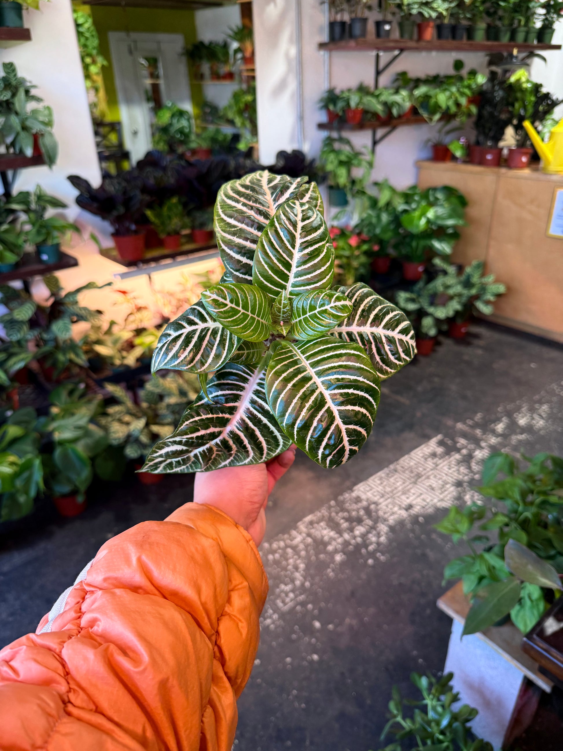 Bright, bold, and a little bit dramatic, the Zebra Plant is here to steal the spotlight! With its deep green leaves striped by striking white veins, it brings an instant touch of tropical flair to any room. When it is really happy, it may even surprise you with vibrant golden-yellow blooms that look like little bursts of sunshine.